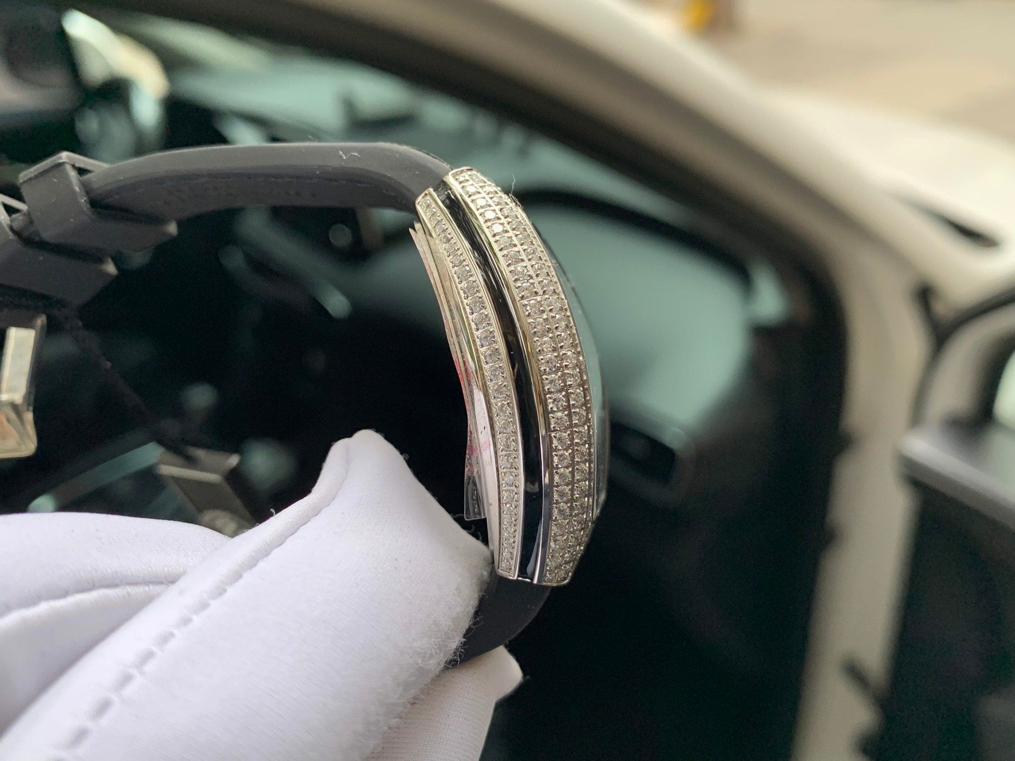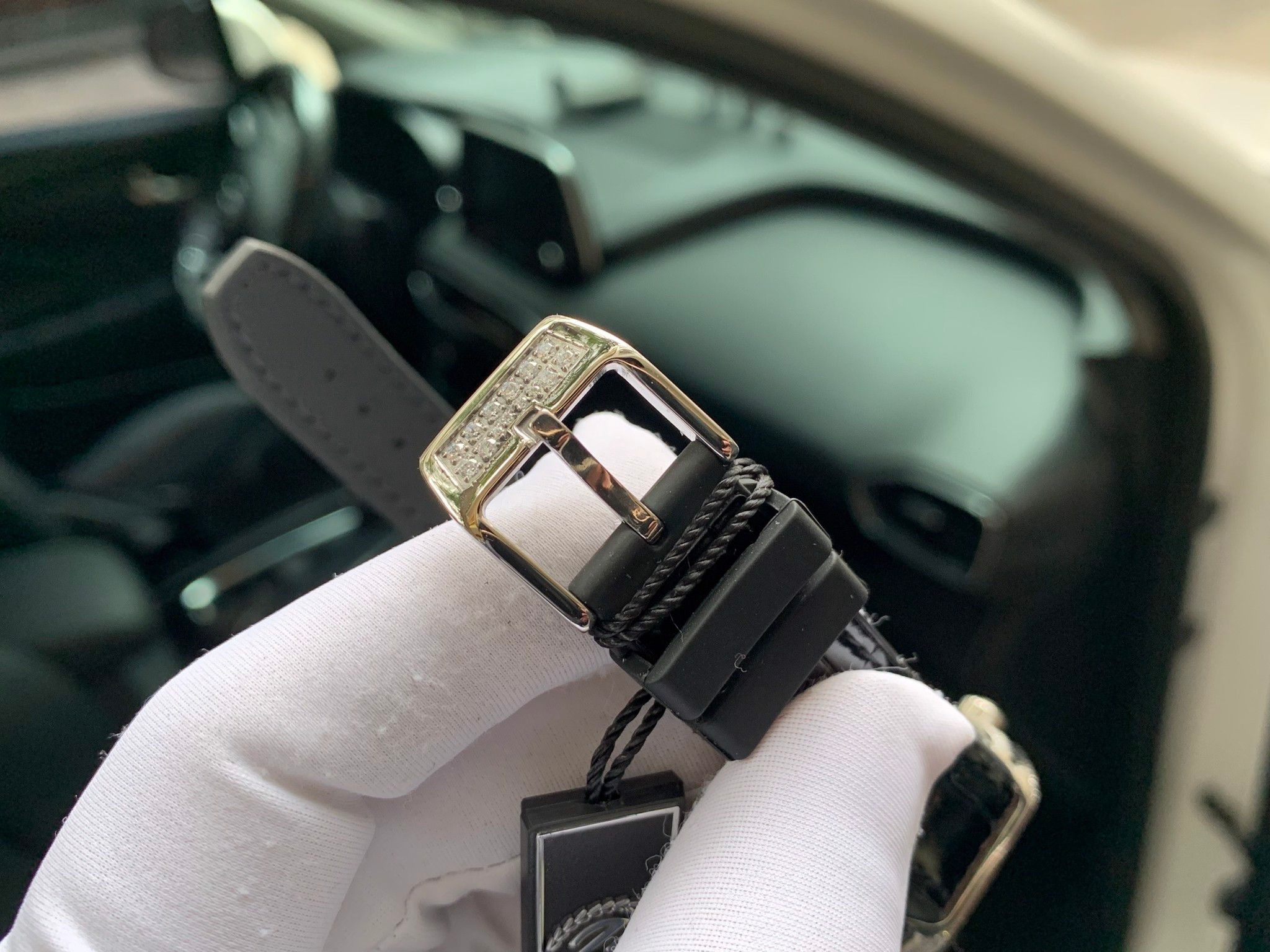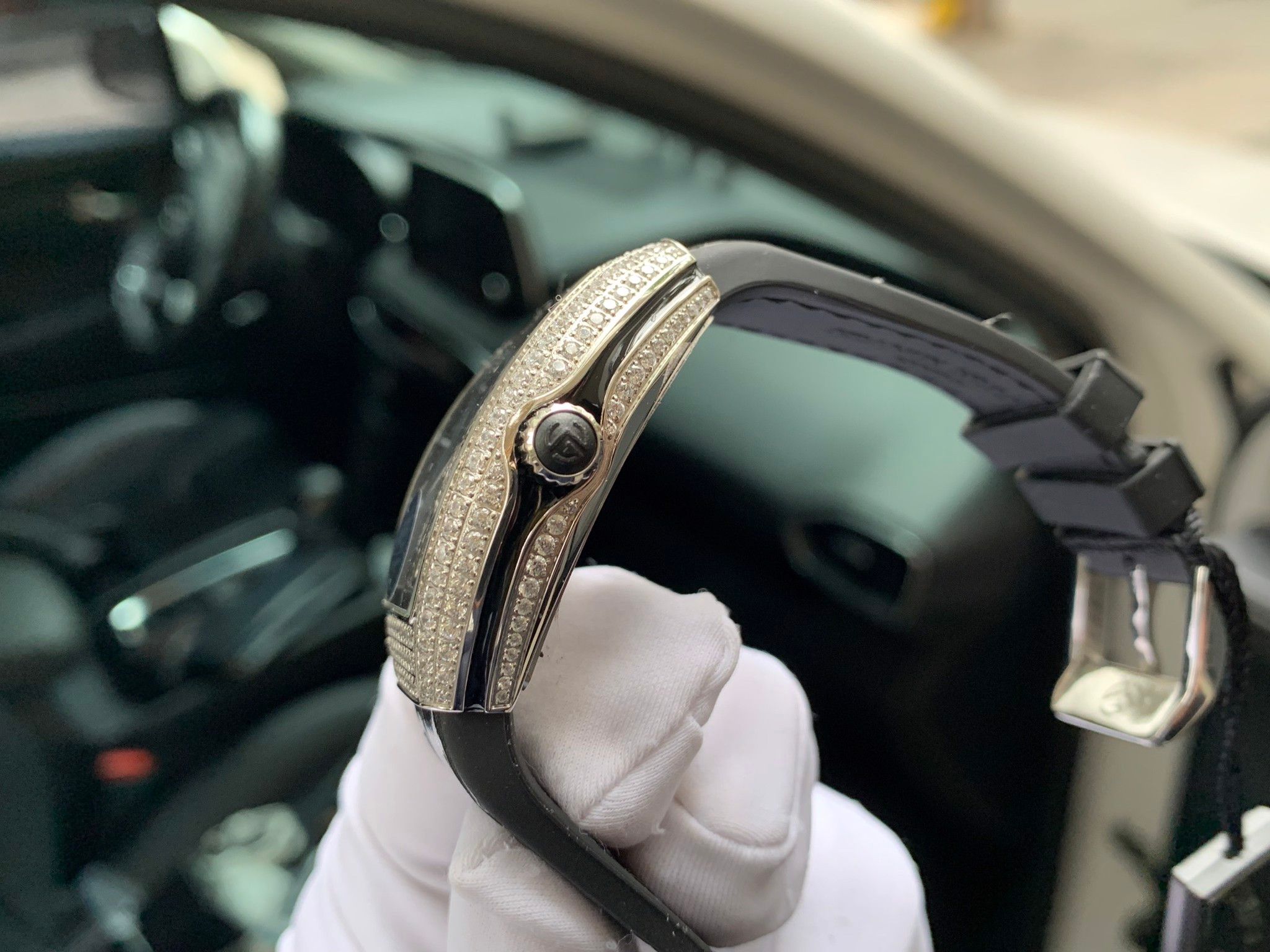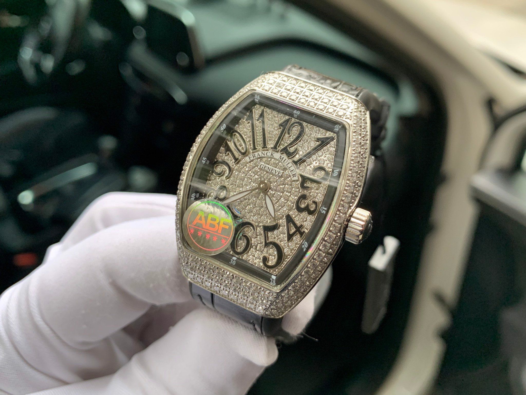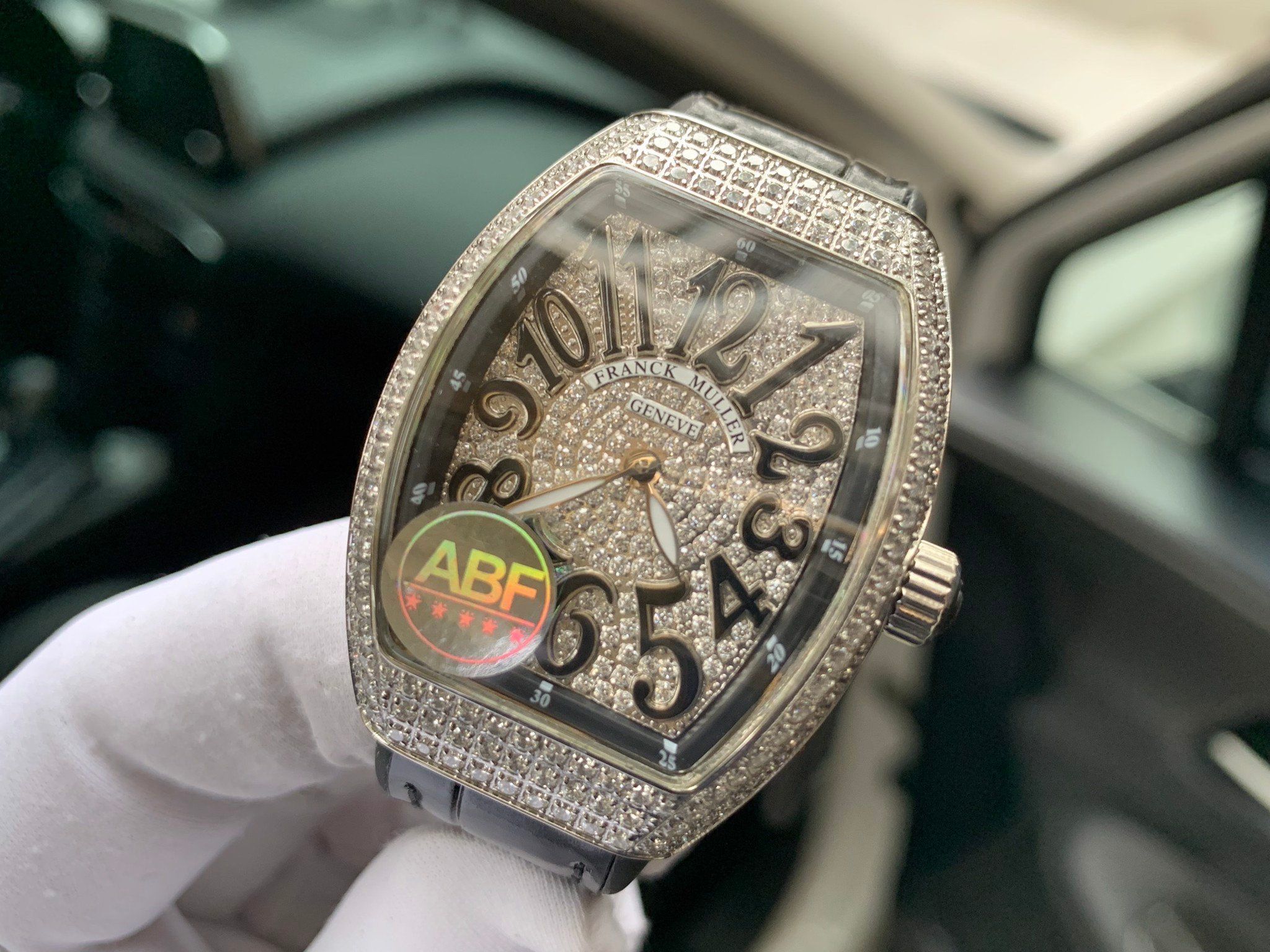 Đồng hồ Franck Muller nữ màu đen siêu cấp đính full kim cương nhân tạo FM V32