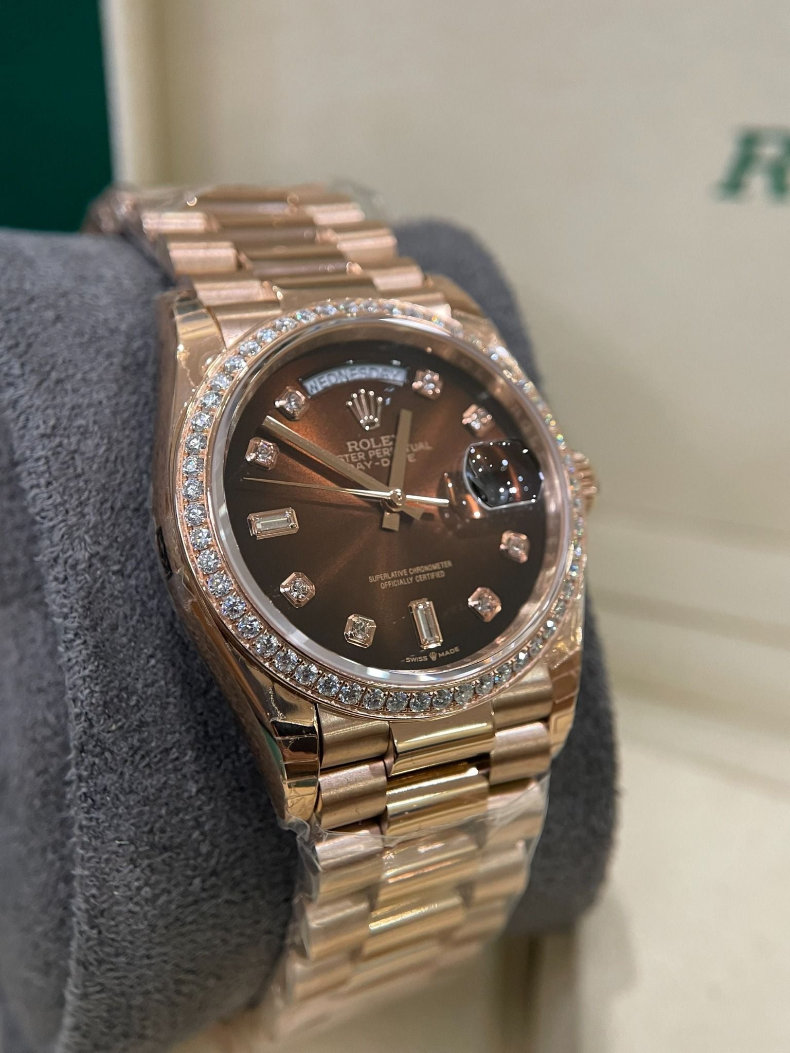 Rolex Day Date 36mm EW Độ Benzel Kim Moissanite Hongkong cực nét - Full Kiểm Định